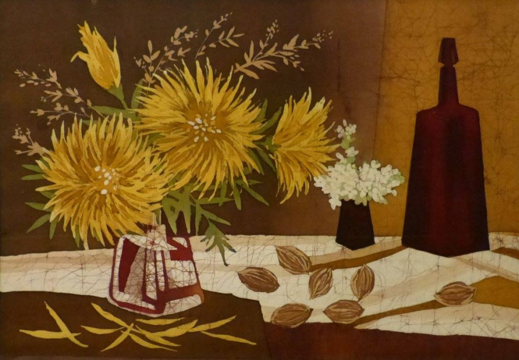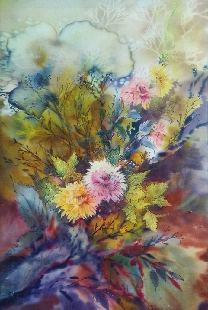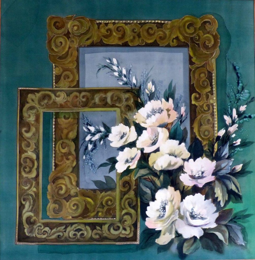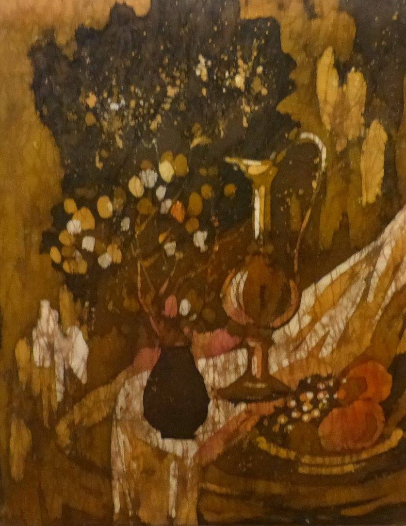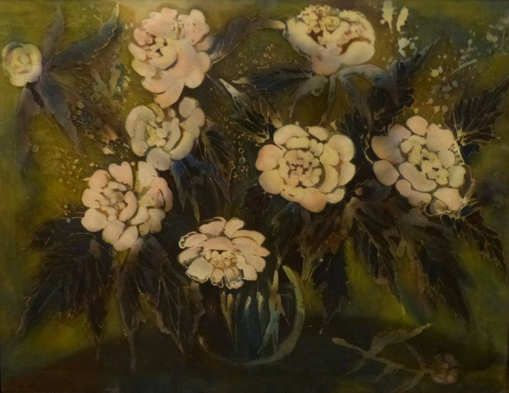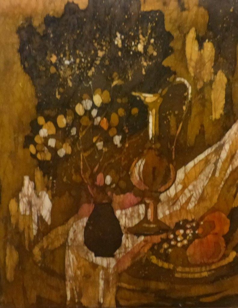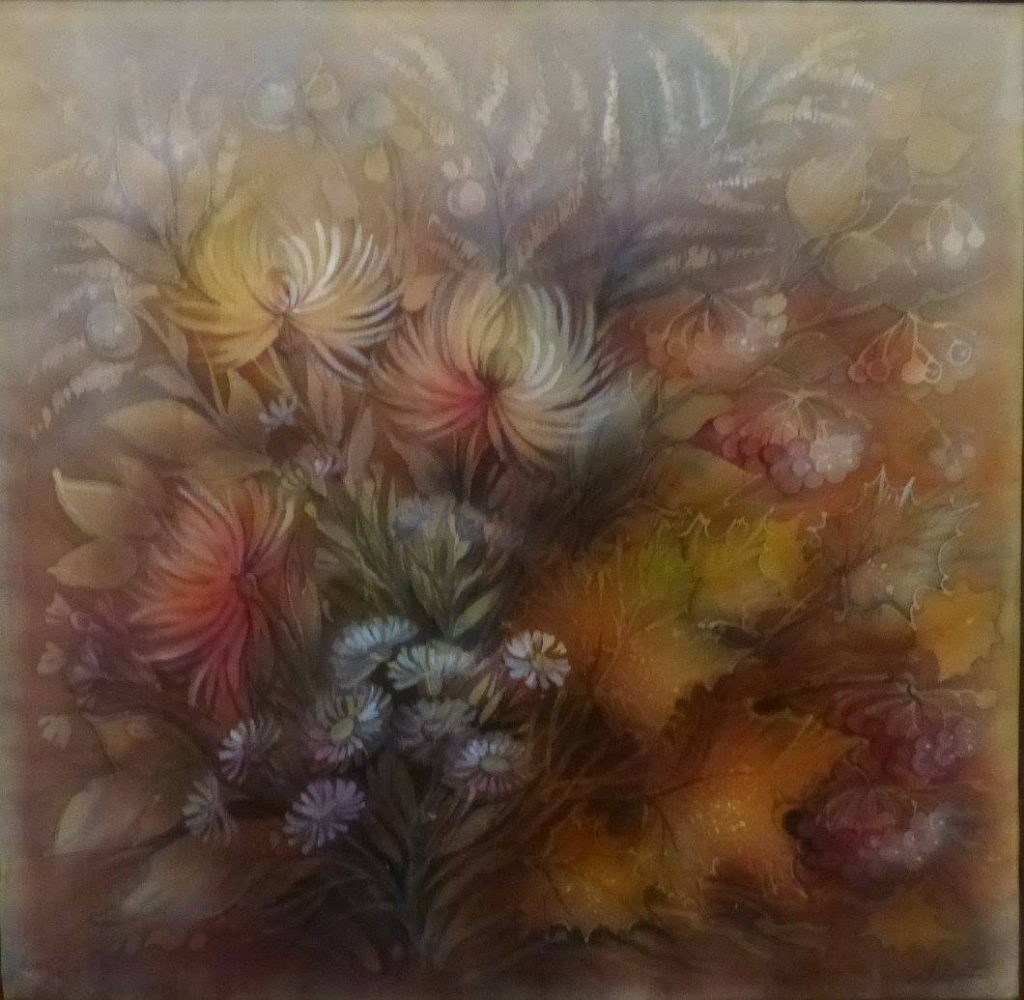 Batik SKWORZOWA, Still Life with Flowers, 80×53, 1991 BELOWA, October, 70×70, 1991 SNEGOWA, Still live, 53×78, 1991 MANANNIKOWA, Power and flowers, 71×41, 1991 GRASS, Jugs, 90×70, 1991 SABININA, Still live, 78×58, 1991 KARELINA, Tree, 41×60, 1991 SABININA, Still live with fruit plate, 55×52, 1991 SKWORZOWA, Stilllive – Flower motif, 80×53, 1991 KOSMATSCHOWA, Autumn fantasy, 65×55, 1992 ANDREJEWA, Flowers, 50×35, 1991 ANISIMOW, Samarkant, 81×71, 1991 TSCHERTOK, Still live – Flowers, 76×76, 1992 TSCHERTOK, Still live – Autumn, 74×76, 1992 GANDURINA, Sea motif, 85×70, 1991 MURMANOW, Still live, 70×90, 1991 KRAWTSCHENKO, Still live – Roses, 50×35, 1991 ORLOWA, Ice crystals, 70×60, 1991 BELOWA, Autumn rain, 61×61, 1991 GOI, Autumn, 100×130, 1991 TSCHERJEMUSCHKINA Still live -Flowers, 60×80, 1991 SNEGOWA, Still live, 78×53, 1991 KRASNOSCHLIKOWA, Swan, 58×80, 1991 KOSAK, Choreographie 5, 35×50, 1991 BOLSCHAKOWA, Women profiles, 40×30, 1991 SABININA, Still live with bottle, 60×66, 1991 SABININA, Composition I, 99×62, 1991 ZISLINA, Open door, 50×40, 1992 KRAJUSCHKINA, Rus, 87×69, 1991 KONNOWA, Still live – Bottle in front of picture, 60×50, 1991 SABININA, Still live with bottles, 41×46, 1991 ZISLINA, Flowers, 50×40, 1992 SABININA, Composition II, 35×52, 1991 LOSINSKAJA, Souvenir, 1992, 92x96cm SABININA, Composition III, 99×62, 1991 POSTOL, In the Studio, 1992, 82x84cm ZISLINA, Flowers, 50×40, 1992 KORDZUJEWA, Evening, 1991, Batik, 100x50cm SALMAN, Red light, 50×40, 1991 KLUKAS, „Selena“, 1991, 60x50cm NIKOLAJEWA, Summer, 1992, 29x25cm . ARCHIRAJEW KLUKAS, Lake, 1991, 50x40cm BARSAKOWA, Summer, 1992, 69x62cm SABININA, Still live with jug, 1991, 20x17cm . KLUKAS, Zefir, 1991, 50x40cm SABININA, Composition I, 1991, 35x52cm Skworzowa, Phantasy, 1991, 80x50cm